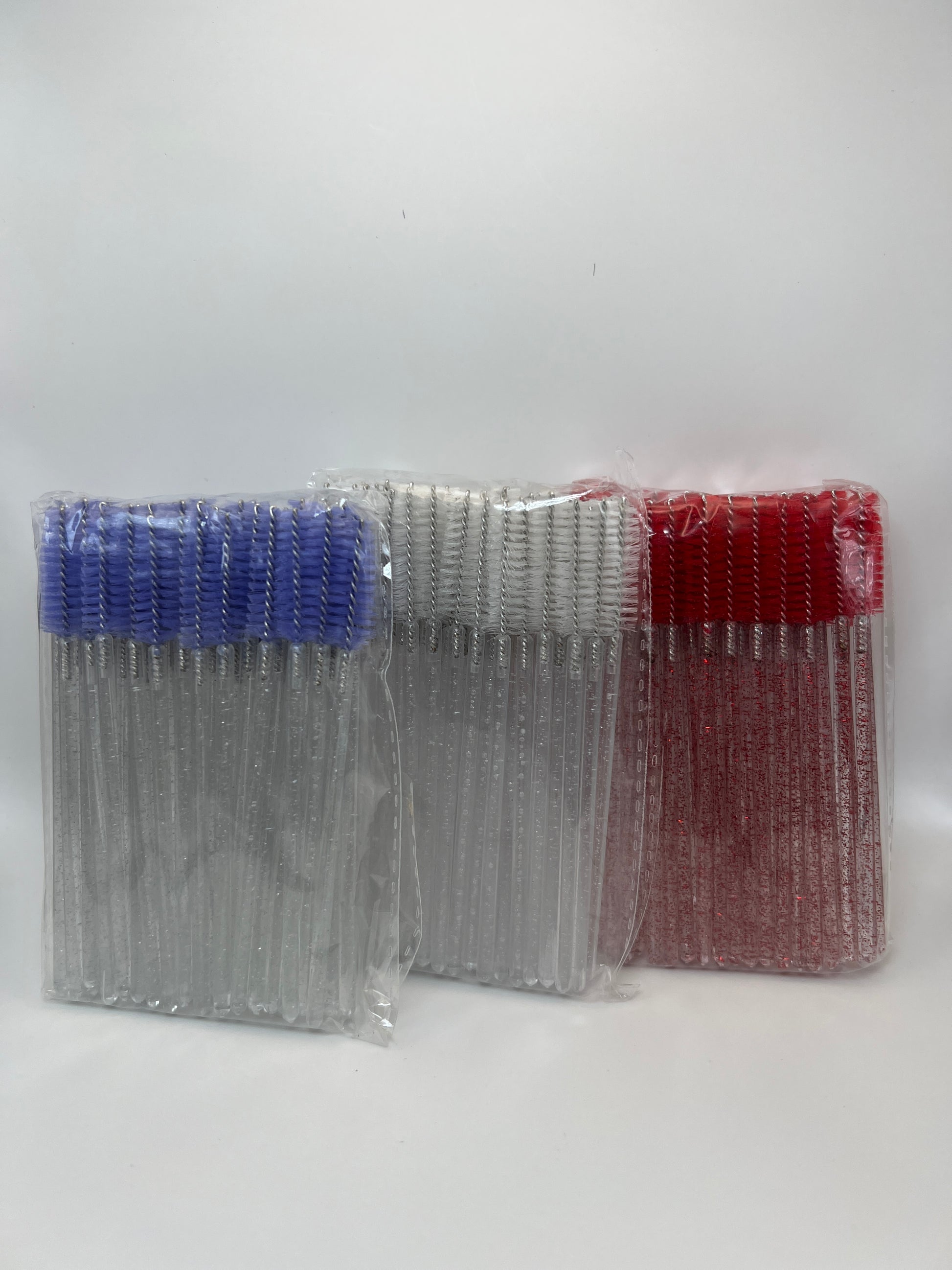 Disposable Mascara Wands great for brushing out lash extensions by keeping them fresh & fluffy. •50 pc. spoolies •Purple, Red or White •Sparkly